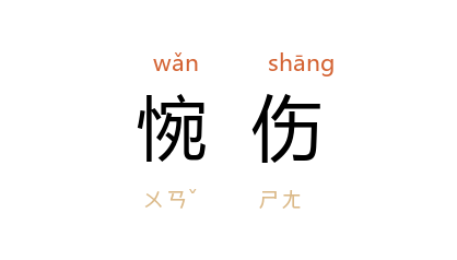 引唐 杜甫 《观公孙大娘弟子舞剑器行》:“与余问答既有以,感时抚事增惋伤。”元 陈高 《种橦花》诗:“弃取何相异,感物增惋伤。”靳以 《造车的人》:“他叹息着,惋伤着自己的苦命。”