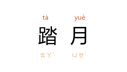 ⒉ 词牌名。原名为「霜天晓角」,因宋朝程垓的霜天晓角词「须共踏,夜深月。」而闻名,故也称为「踏月」。