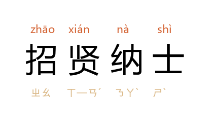 ⒈ 招揽吸收有品德、学识的贤人士子。元·关汉卿也作「纳士招贤」。