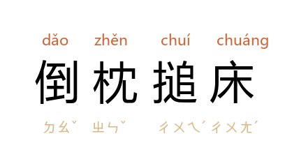 ⒈ 形容烦躁、无奈、愤懑或悲痛的样子。元·陈子厚·醉花阴·宝钏松金髻云亸套:「著我倒枕搥床怎生卧,到二三更暖不温和,连这没人情的被窝儿也奚落我。」也作「打枕捶床」、「倒枕捶床」、「捣枕搥床」、「椎床倒枕」。