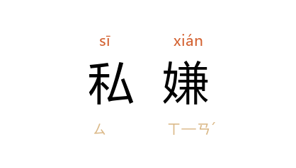 引《晋书·刘乔传》:“宜释私嫌,共存公义。”范文澜 蔡美彪 等《中国通史》第三编第二章第六节:“张保皋、郑年 为保护 新罗 民众,放弃私嫌,合力禁止人口卖买,无愧为 新罗国 的英雄。”