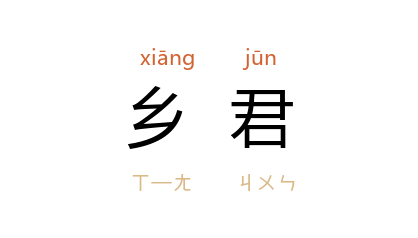 ⒈ 古代妇女的封号。始于晋武帝封羊祜妻为万岁乡君。唐代外命妇之制,勋官四品母或妻为乡君。宋废。明惟宗室女有此称。清亦惟入八分镇国公、辅国公女格格及贝勒侧室之女称“乡君”。