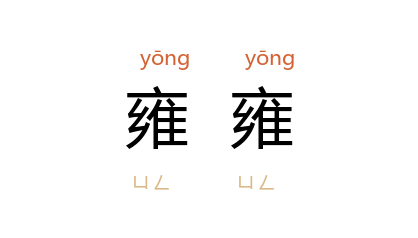 ⒈ 和谐的样子。唐·孔颖达·正义:「雍雍是和貌。」也作「邕邕」、「雝雝」、「廱廱」。