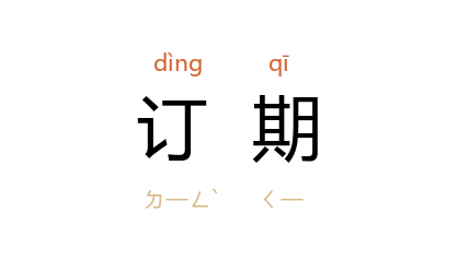 引明 凌濛初 《北红拂》第三出:“则俺沽酒遇豪侠。他可便订期邀措大,不知那里是他家。”明 徐弘祖 《徐霞客游记·楚游日记》:“刘 沿流还觅,始与余遇,復订期而别。”清 李伯元 《南亭笔记》卷六:“默深 欣然,愿订期过访。”