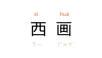 ⒈ 西洋画的缩称。参见「西洋画」条。