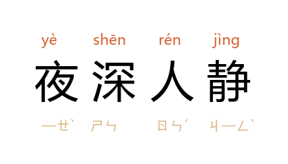引《刻拍案惊奇·卷一七》:「趁此夜深人静,娘子作作好事则个。」清·洪升《长生殿·第一四出》:「听到月高初更后,果然弦索齐鸣。恰喜禁垣,夜深人静,琤璁齐应。」