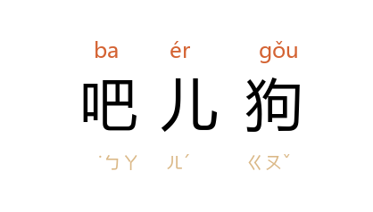 引鲁迅 《二心集·上海文艺之一瞥》:“如果再一变而为吧儿狗,好象不管闲事,而其实在给主子尽职。”鲁迅 《准风月谈·秋夜纪游》:“但可惜在这里听到的是吧儿狗。”