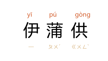 引元 吴昌龄 《东坡梦》第三折:“都归一个空,只有那伊蒲供。”明 杨慎 《仁祠》:“《汉书·明帝纪》:‘以助仁祠伊蒲之供。’仁祠,僧寺也。伊蒲供,斋食也。”明 杨慎 《伊兰赋》:“西域 有伊兰以为佛供即此,《汉书》所谓伊蒲之供。”