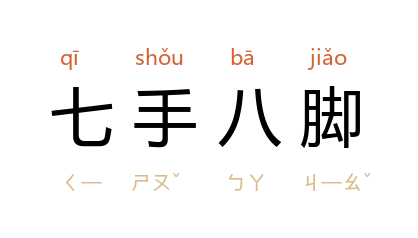 引《金瓶梅·第七回》:「七手八脚将妇人床帐、装奁、箱笼,搬的搬,抬的抬,一阵风都搬去了。」