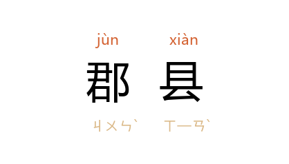 ⒈ 郡和县的并称。郡县之名,初见于 周。秦始皇 统一 中国,分国内为三十六郡,为郡县政治之始, 汉 初封建制与郡县制并行,其后郡县遂成常制。