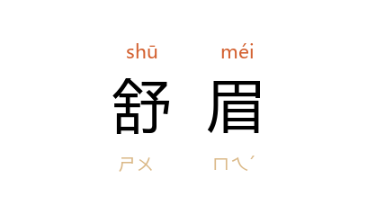引元 黄溍 《次韵答蒋春卿》:“不谓红尘拂面时,轩然谈笑一舒眉。”明 张四维 《双烈记·抒悃》:“汝众臣子岂可安意舒眉,当念先皇櫛风沐雨。”清 李渔 《奈何天·闹封》:“慢舒眉,你道是实比虚名好,只怕我名高实也随。”