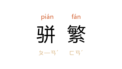 引唐 元稹 《祭礼部庾侍郎太夫人文》:“公卿委累,贤彦駢繁。”明 徐渭 《代贺张相公启》:“赐物駢繁,直逾三锡。”清 朱之瑜 《答长崎镇巡黑川正直书》:“恭惟老先生臺下,福祉駢繁,融和庆衍。”