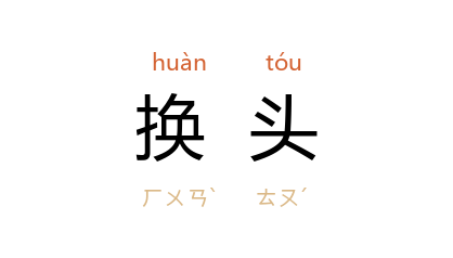 ⒈ 词的下片起头句和前片不相同的叫换头。明杨慎《词品·秦少游赠楼东玉》:“秦少游《水龙吟》赠营妓楼东玉者,其中'小楼连苑',及换头'玉佩丁东',隐'楼东玉'三字。”清周济《宋四家词选·论》:“吞吐之妙,全在换头煞尾。古人名换头为过变,或藕断丝连,或异军突起,皆须令读者耳目振动,方成佳制。换头多偷声,须和婉,和婉则句长节短,可容攒簇。”或谓《诗》中已有换头,但其名称在填词时始出现。清纳兰性德《填词》诗:“不见句读参差三百篇,已自换头兼转韵。”有时亦指词由前片转入下片句法和前片完全相同的,即谓乐曲过拍后另起一头。