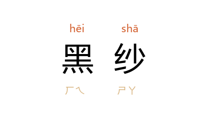 引李瑛 《梅园青松·一月的哀思》:“啊,汽车,扎起白花,人们,黑纱缠臂。”杨大群 《东北王世家》第五八回:“灵堂前并排站着二八一十六个卫兵,袖子上系着黑纱。”