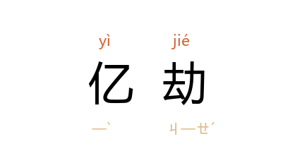 ⒈ 谓极长久的时间。佛经言天地的形成到毁灭为一劫。