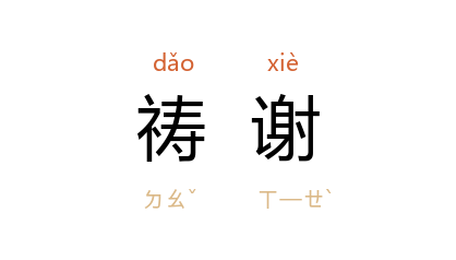 引汉 王充 《论衡·感虚》:“然则天地之有水旱,犹人之有疾病也。疾病不可以自责除,水旱不可以祷谢去。”《说郛》卷十一引 南唐 刘崇远 《金华子杂编》:“老父惊惶,速以裀褥藉之,焚香祷谢。”