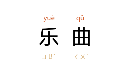 ⒈ 音乐作品。统称演奏和歌唱之歌曲。