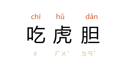 ⒈ 亦作“喫虎胆”。形容胆量极大。