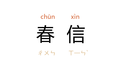 引宋·陆游〈梅花〉诗五首之四:「春信今年早,江头昨夜寒。」宋·刘克庄〈病后访梅九绝〉之八:「春信分明到草芦,呼儿沽酒买溪鱼。」