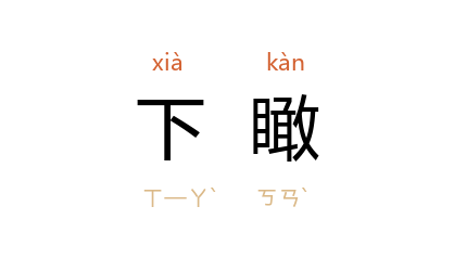 引唐 康骈 《剧谈录·浑令公李西平爇朱泚云梯》:“有 西明寺 僧陷在贼中……教 泚 造攻城云梯,其高九十餘尺,上施板屋楼櫓,可以下瞰城中。”《宋史·赵鼎传》:“荆 襄 左顾 川 陕,右控 湖湘,而下瞰 京洛,三国所必争。”明 徐弘祖 《徐霞客游记·游庐山日记》:“路宛转峯罅,下瞰絶涧诸峯,在 铁船峯 旁,俱从涧底矗耸直上。”
