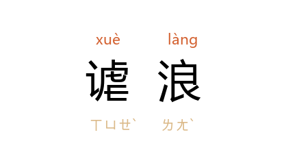 引晋 陆机 《七徵》:“《关雎》以寤寐为慽,《溱洧》以謔浪为欢。”《初刻拍案惊奇》卷三二:“説着好的,喧譁謔浪,彼此称羡。”钱锺书 《围城》三:“因为他承受老派名士对女人的态度:或者谑浪玩弄,这是对妓女的风流;或者眼观鼻,鼻观心,不敢平视,这是对朋友内眷的礼貌。”
