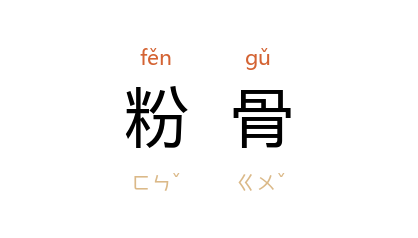 引《南齐书·王僧虔传》:“一门二世,粉骨卫主,殊勋异绩,已不能甄,常阶旧途,復见侵抑。”《资治通鉴·梁武帝太清二年》:“臣寧堪粉骨,报命讎门。乞 江 西一境,受臣控督。”宋 苏辙 《为兄轼下狱上书》:“臣愿与 軾 洗心改过,粉骨报效。”