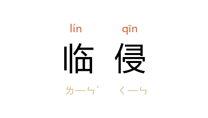 引元 关汉卿 《望江亭》第二折:“你便要接新官,也合通报咱知;又无甚紧文书、忙公事,可着我心儿里不会,转过这影壁偷窥,可怎生独自个死临侵地?”按,死临侵地,犹言死板板地。 明 汤显祖 《牡丹亭·闹殇》:“不提防你后花园閒梦銃,不分明再不惺忪,睡临侵打不起头稍重。”