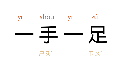 亦作“一手一脚”。 郭沫若 《棠棣之华》第五幕:“我们的父亲死得很早,是我们的母亲把我们姐弟两人一手一脚抚养成人。”