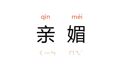 引《文选·司马迁<报任少卿书>》:“务壹心营职,以求亲媚於主上。”吕延济 注:“媚,爱也。”《陈书·长沙王叔坚传》:“臣之本心,非有他故,但欲求亲媚耳。”宋 苏洵 《上皇帝书》:“凡在位者,不敢用褻狎戏嫚,以求亲媚於陛下。”
