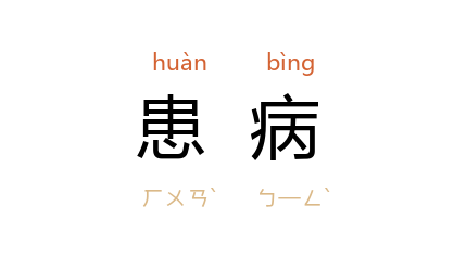 英fall ill; be ill; suffer from an illness; be afflicted with a disease;