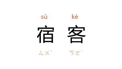 引唐 贾岛 《宿村家亭子》诗:“宿客未眠过夜半,独闻山雨到来时。”崔左夫 《在东升客栈里》:“客栈的主人还没有回来。我们只好对新的宿客尽一些指点的义务了。”