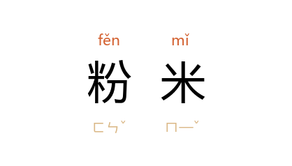 ⒈ 古代贵族礼服上的白色米形绣文。《书·益稷》:“日、月、星辰、山、龙、华虫,作会(绘);宗彝、藻、火、粉米、黼、黻,絺绣。”孔颖达疏引郑玄曰:“粉米,白米也。”蔡沈集传:“粉米,白米,取其养也。”一说,粉米为二物。孔传:“粉,若粟冰;米,若聚米。”