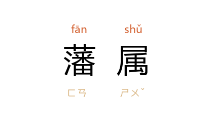 ⒈ 附属的地方或国家,如朝鲜、安南、琉球、缅甸等国过去都是我国的藩属。也作「藩附」。