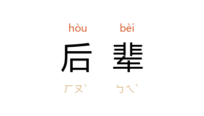 ⒉ 后进之人。指同道中年轻或资历较浅的人。