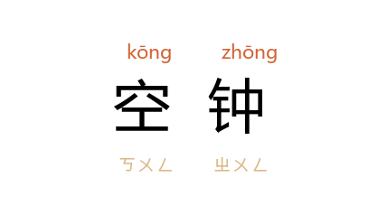 引明 刘侗 于奕正 《帝京景物略·春场》:“空鐘者,刳木中空,旁口,盪以沥青,卓地如仰鐘。”清 富察敦崇 《燕京岁时记·空钟》:“空鐘者,形如车轮,中有短轴,儿童以双杖繫棉线播弄之,儼如天外晨鐘。”