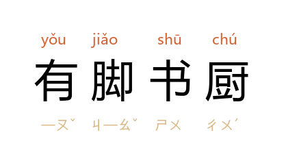 引宋·龚明之《中吴纪闻·卷三·有脚书厨》:「(程信民)自幼读书于南峰山,先都官墓庐,攻苦食淡,手未尝释卷,记问精确,经传子史,无不通贯,乡人号为有脚书厨。」
