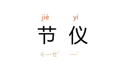 引宋 吴自牧 《梦粱录·十一月冬至》:“冬至岁节,士庶所重,如餽送节仪,及举盃相庆,祭享宗禋。”《初刻拍案惊奇》卷十三:“每年束脩五十金,其外节仪,与夫供给之盛,自不必説。”