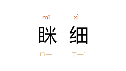 引周立波 《暴风骤雨》第二部二五:“刘大娘 乐得眼睛瞇细了,笑着说道:‘你这一说,咱心尖都亮了。’”茅盾 《小巫》四:“少爷不作声了,眯细了眼睛看 菱姐 的面孔。”