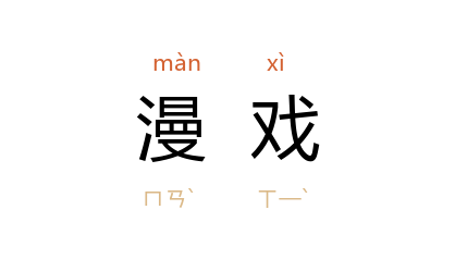 引《资治通鉴·梁武帝太清三年》:“﹝ 高洋 ﹞每退朝还第,輒闭阁静坐,虽对妻子,能竟日不言。或时袒跣奔跃,夫人问其故, 洋 曰:‘为尔漫戏。’其实盖欲习劳也。”胡三省 注:“漫戏,言漫尔作戏。”
