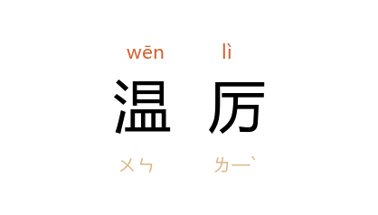 引语本《论语·述而》:“子温而厉,威而不猛,恭而安”。 邢昺 疏:“言 孔子 体貌温和而能严正”。 元 辛文房 《唐才子传·柳宗元》:“退之 豪放奇险过之,而温厉靖深不及也。”