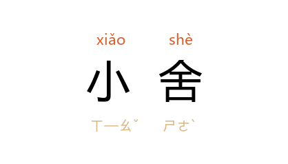 ⒈ 小屋。谦称自己的住宅。小门小户。见“小舍人”。