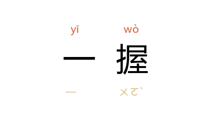 ⒈  犹言一把。亦常喻微小或微少。犹一柄。一掌之中。古代一种算法,布竹筹二百七十一枚而成六角,为“一握”。一把抓住。