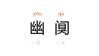 引宋 王禹偁 《黄州新建小竹楼记》:“远吞山光,平挹江瀨,幽闃辽夐,不可具状。”金 辛愿 《题游彦明林园》诗:“城郭繁华断往还,林园幽闃养高閒。”明 徐弘祖 《徐霞客游记·滇游日记六》:“峡路渐翳,丛箐横柯,遂成幽闃,然已渐逼絶顶之下矣。”