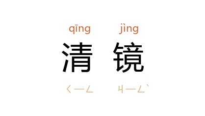 引南朝 齐 谢朓 《冬绪羁怀示萧谘议虞田曹刘江二常侍》诗:“寒灯耿宵梦,清镜悲晓髮。”唐 杜甫 《苏大侍御访江浦赋八韵记异》:“今晨清镜中,白閒生黑丝。”明 谢榛 《四溟诗话》卷三:“明朝对清镜,衰鬢又逢春。”亦喻清澈的湖水。 宋 曾巩 《西湖一月二十日》诗:“漾舟明湖上,清镜照衰颜。”