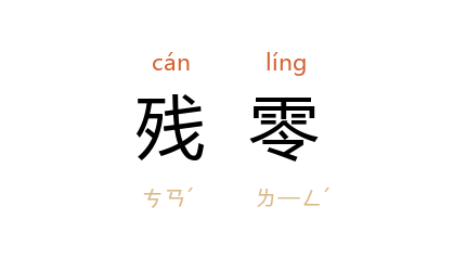 引宋 岳飞 《奏邓州捷状》:“其贼大溃……内 高仲 将一项残零人马走入 邓州,闭门坚守。”宋 李清照 《<金石录>后序》:“所有一二残零,不成部帙书册三数种,平平书帖,犹復爱惜如护头目,何愚也邪!”