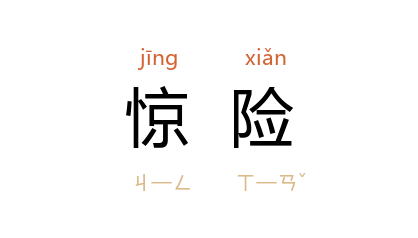 引清 百一居士 《壶天录》卷下:“虽然目下多惊险,保汝平安去復来。”孔厥 《新儿女英雄续传》第六章:“平常,他不大说话;只是爱看惊险的,侠义的小说。”