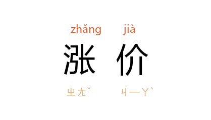 引《二十年目睹之怪现状》第十九回:“伯衡 便道:‘府上的田非但没有贬价,还在那里涨价呢!’”茅盾 《送考》:“上学期,初中学费,二十元;这暑假里,忽然大家涨价了!有的三十,有的四十。”