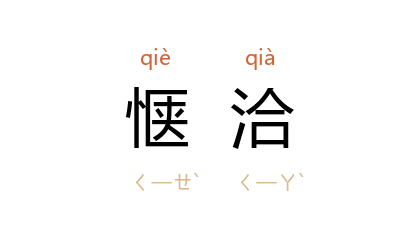 引张锺瑞 《对于要求开设国会者之感喟》首章:“一二督抚中有与民心相愜洽者,则政府即时为移动,兢兢焉惟恐排斥之不力。”《辛亥革命前十年间时论选集·国会请愿同志会意见书》:“且愜洽既深,政见一致,多数人即可长为一党之行动。”