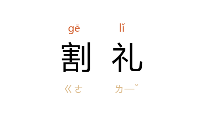 ⒈ 犹太教及回教男子受教时,割去生殖器包皮,称为「割礼」。