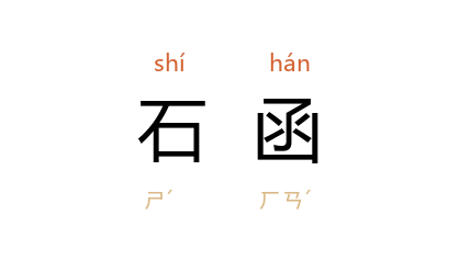 引北魏 郦道元 《水经注·汝水》:“城南里餘有神庙,世谓之 张明府祠。庙前有圭碑,文字紊碎,不可復寻。碑侧有小石函。”唐 温庭筠 《老君庙》诗:“自怜金骨无人识,知有飞龟在石函。”明 方孝孺 《题<萧翼赚兰亭图>》:“玩之没身,纳诸陵寝,石函铁匣,錮於山陵之下,其藏护亦固矣。”清 方文 《宋遗民咏·唐玉潜玨》:“夜窃其骨归,石圅抵金縢。”